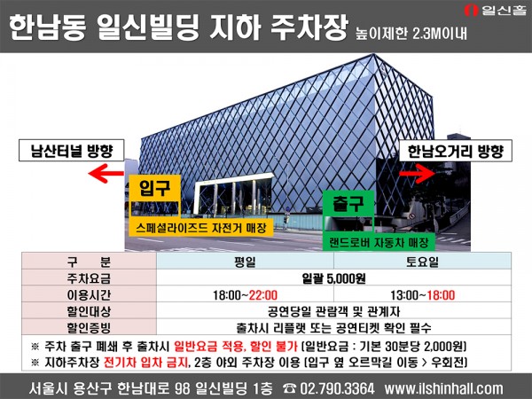 [일신홀] 찾아오는길 · 주차장이용안내 페이지 정보 작성자 일신홀 작성일19-11-26 14:38 조회26,171회 댓글0건 관련링크 이전글 다음글 목록 본문 [일신홀] 찾아오는길 · 주차장이용안내 이전글 다음글 목록